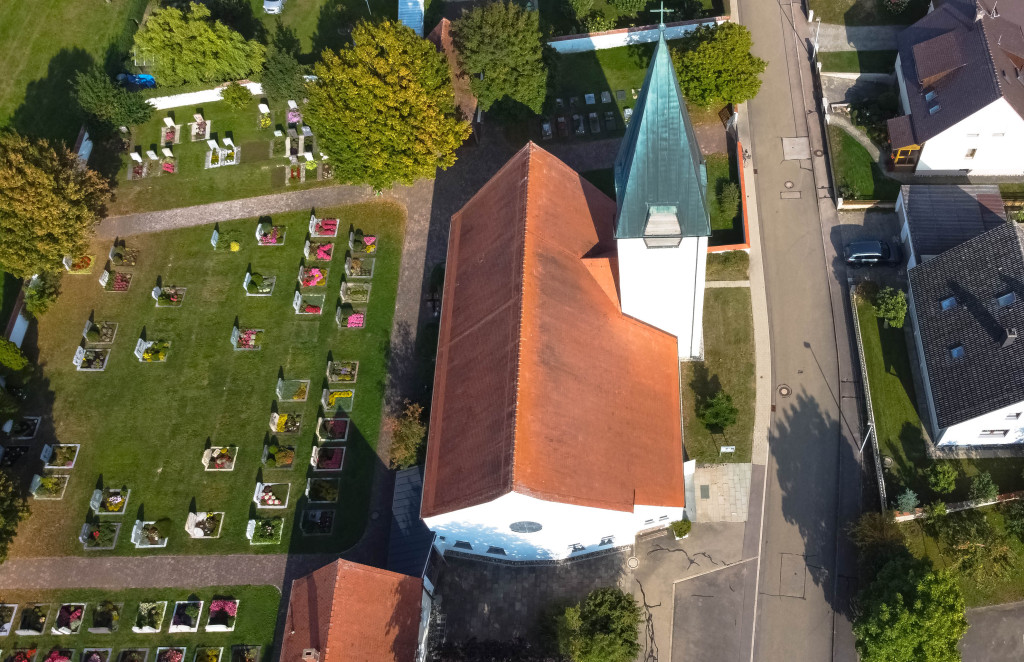 1961 fand die Einweihung dieses modernen Kirchengebäudes mit Pfarr- und Gemeindehaus statt. Ende der 60er-Jahre konnte der dazu gehörende Friedhof eröffnet werden.